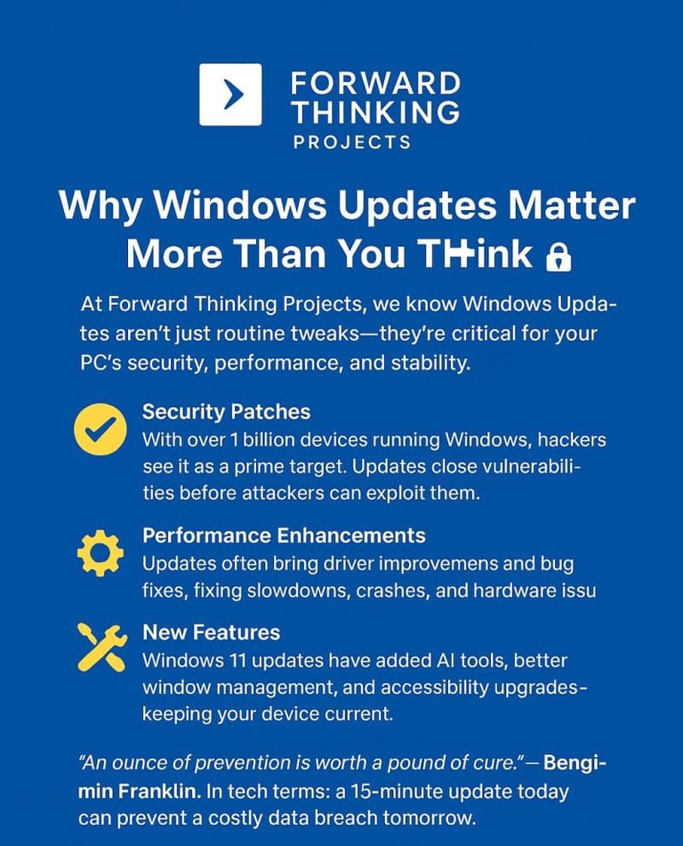 🔔 If you haven’t already, check your Windows Update settings today. Set a reminder. Encourage your team to do the same. Staying current is staying safe.